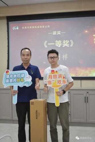 為宣導家鋒的企業文化,增強員工歸屬感,體現公司人性化關懷,公司組織了中秋線上猜燈謎的活動。本次活動氣氛熱烈,各部門同事積極參與,共有一百多名員工參賽;公司總部于9月8日舉辦了頒獎儀式,現場出席的嘉賓有總經理譚忠先生、副總經理秦文先生、各部門代表以及線上的外區同事們。